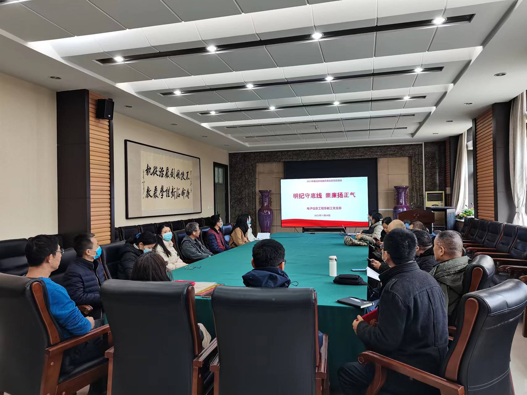 为深入贯彻落实习近平总书记关于廉洁文化建设和加强党的纪律建设的系列重要讲话精神,加强学校廉洁文化建设,切实提高全体党员的政治意识、规矩意识、纪律意识和诚信意识。11月28日下午,电子信息工程系教工党支部在6225会议室开展了以“明纪守底线 崇廉扬正气”为主题的廉洁文化教育活动,此次活动由电子信息工程系党支部书记付麦霞主持,全体教师参会。