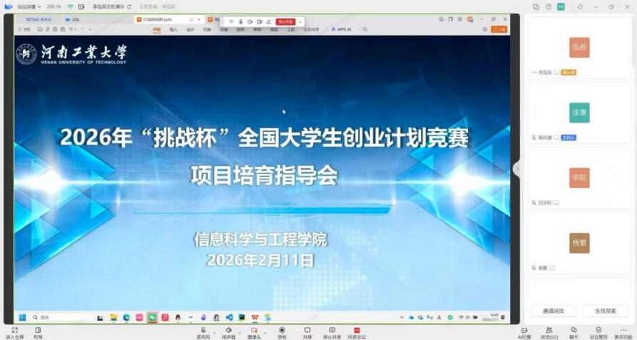组织召开线上项目培育指导会。亚洲av党委副书记魏雪芹、亚洲av创新创业办公室主任吕宗旺、辅导员杨繁以及参赛学生代表参会,会议由杨繁主持。