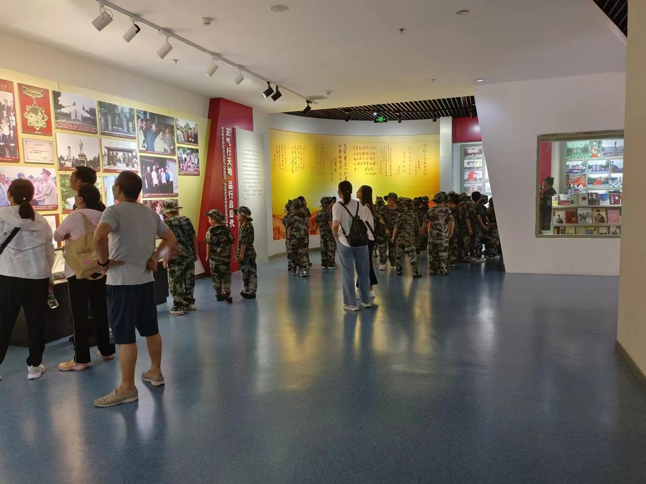 队员们在参观的途中,遇到夏令营的小朋友们,看着他们认真阅读英雄事迹,并且向队员们询问相关信息,感到非常激动,爱国情怀已在孩子们小小的心灵中生根发芽。