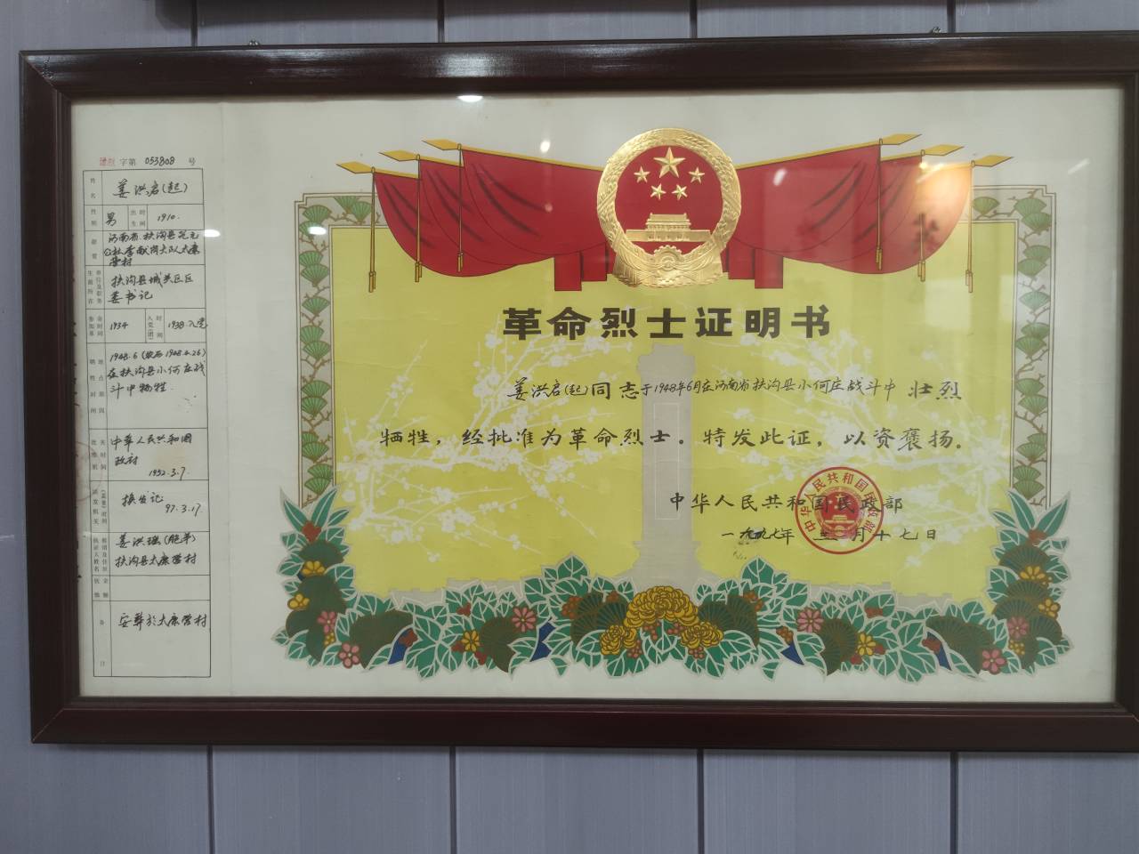 1948年6月5日城关区政府和区武装队在城内剿匪后宿营于小何庄。是夜,适太康县匪首郭馨坡率匪徒数百人来扶沟县抢劫,于拂晓时向我军偷袭,姜鸿起赤臂持枪冲出去,奋起与敌人进行殊死拼杀,终因弹尽援绝壮烈牺牲,年仅28岁。