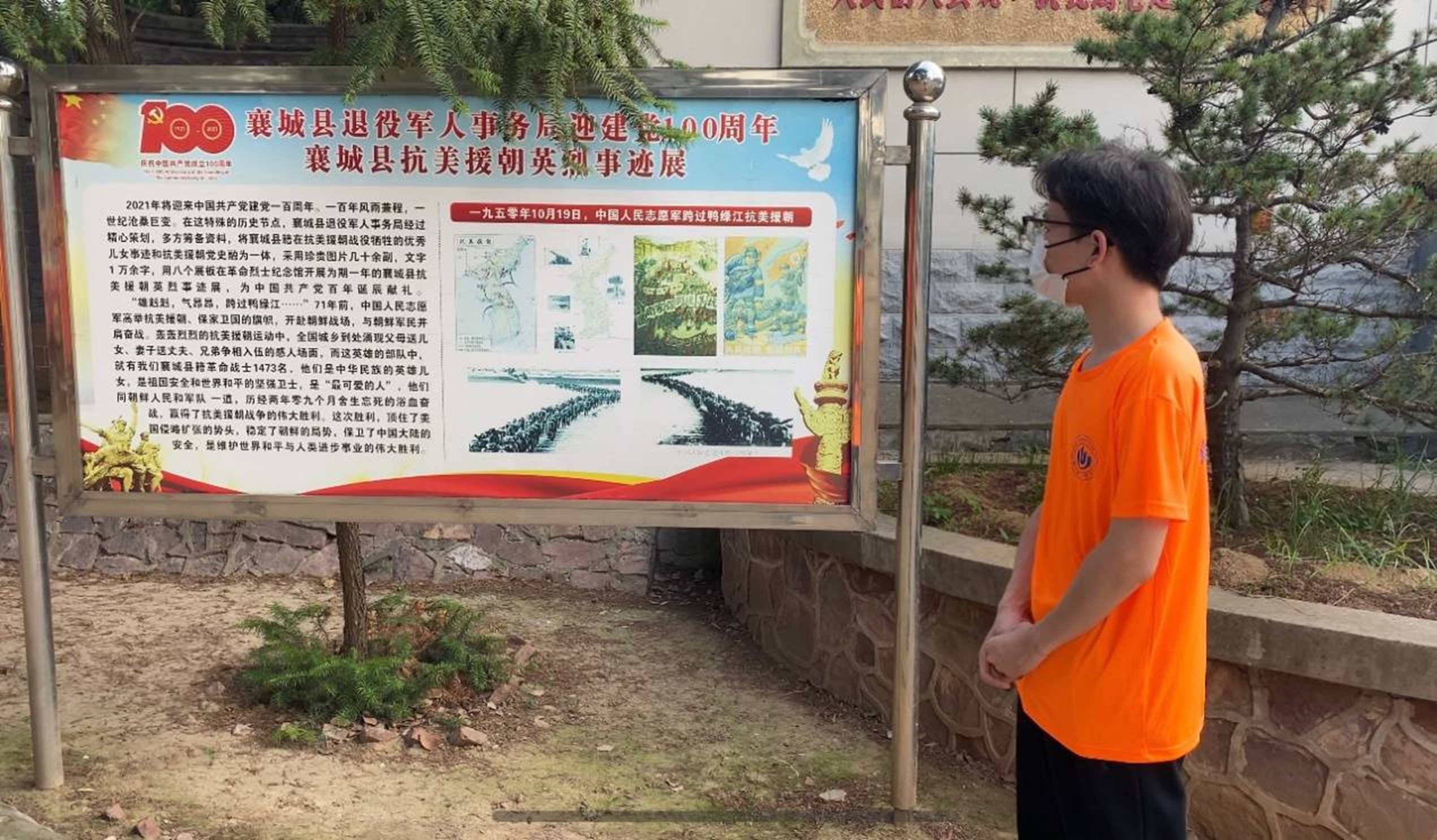 在革命烈士纪念馆西侧,屹立着印有襄城县抗美援朝英烈事迹的展板。“雄赳赳,气昂昂,跨过鸭绿江……”七十余年前,中国人民志愿军高举抗美援朝、保家卫国的旗帜,开赴朝鲜战场,与朝鲜军民并肩奋战。轰轰烈烈的抗美援朝运动中,全国城乡到处涌现父母送儿女、妻子送丈夫、兄弟争相入伍的感人场面,而这英雄的部队中,就有襄城县籍革命战士1473名,他们是中华民族的英雄儿女,是祖国安全和世界和平的坚强卫士,是“最可爱的人”,他们同朝鲜人民和军队一道,历经两年零九个月舍生忘死的浴血奋战,赢得了抗美援朝战争的伟大胜利。这次胜利,顶住了美国侵略扩张的势头、稳定了朝鲜的局势,保卫了中国的安全,是维护世界和平与人类进步事业的伟大胜利。