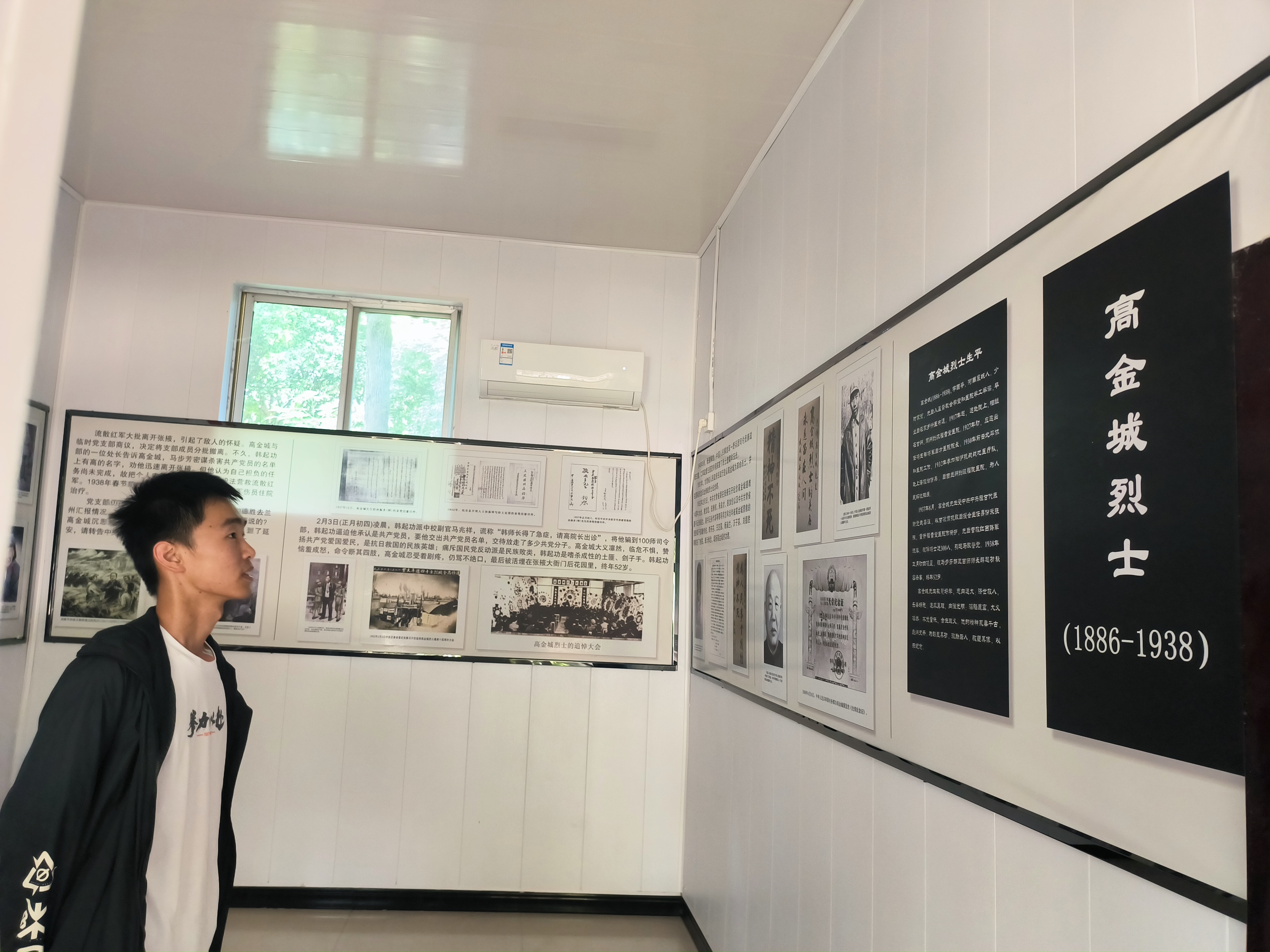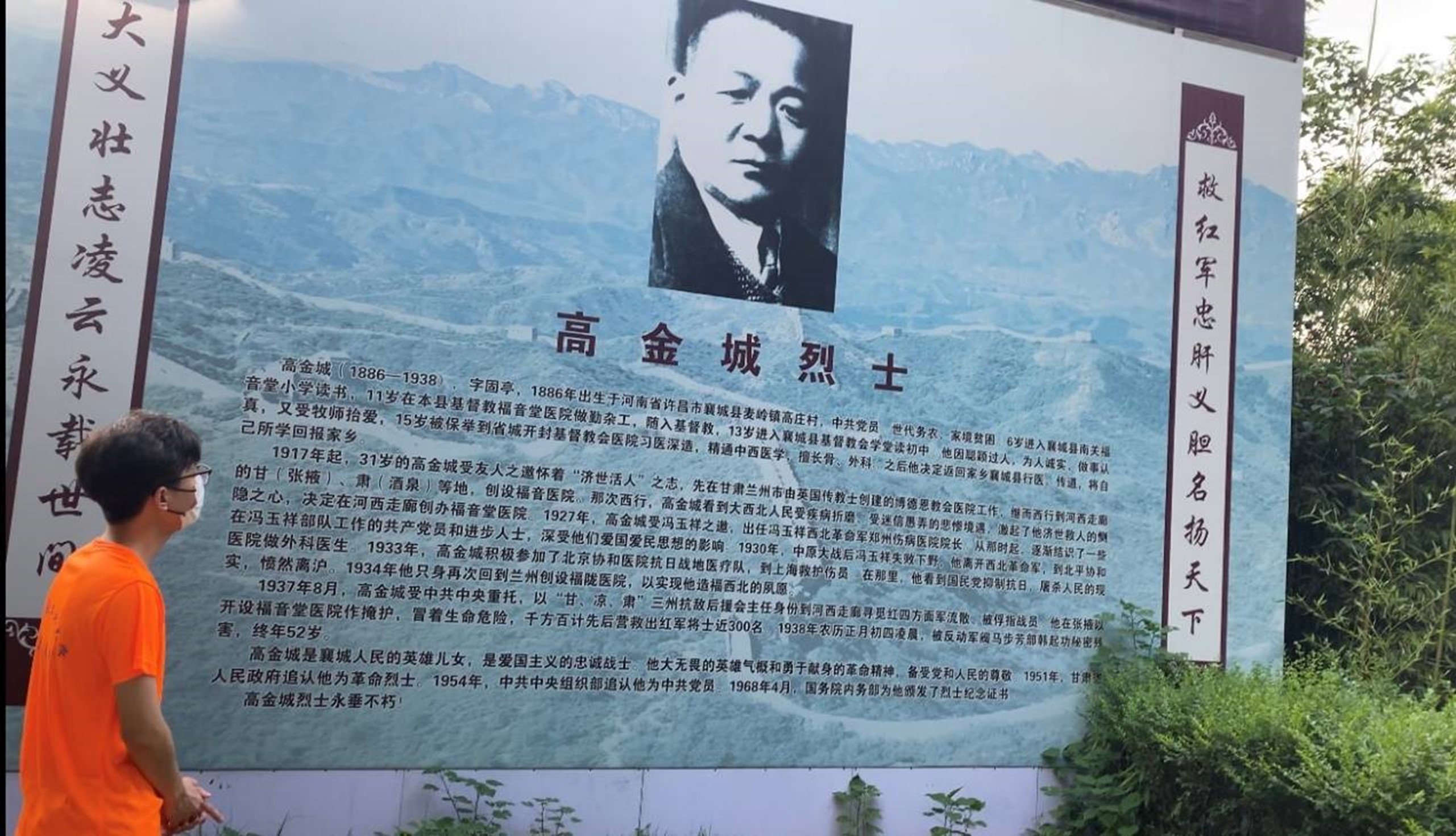 穿过党史文化长廊,这里记录了中国共产党从中共一大、中共二大直到党的十八大、党的十九大的伟大发展历程,展示出中国共产党初创时期走过的峥嵘岁月,阐释了中国共产党人的建党初心。大量生动的历史资料、详实的文字介绍、珍贵的革命文物为到访群众上了生动一课,实践队员深深为党和革命先辈英勇奋战的革命精神所折服。救死扶伤为革命,慷慨赴难英名传。细读一段段史料,细看一幅幅图片,红西路军血战河西的悲壮征程和高金城烈士冒死营救红军的英雄事迹跃然眼前。1937年8月,正当全国人民同仇敌忾,抗击日本侵略者的时候,高金城接受了中国共产党的委托,深入国民党马步芳军队血腥统治的甘州(今张掖市),在被俘红军临时党支部的配合下,采取各种方法营救被俘和流散的西路军干部、战士。在200多名红军得救、临时党支部的同志安全撤离后,他仍坚持斗争,最后光荣牺牲,谱写了我党统战史上的一曲壮歌。