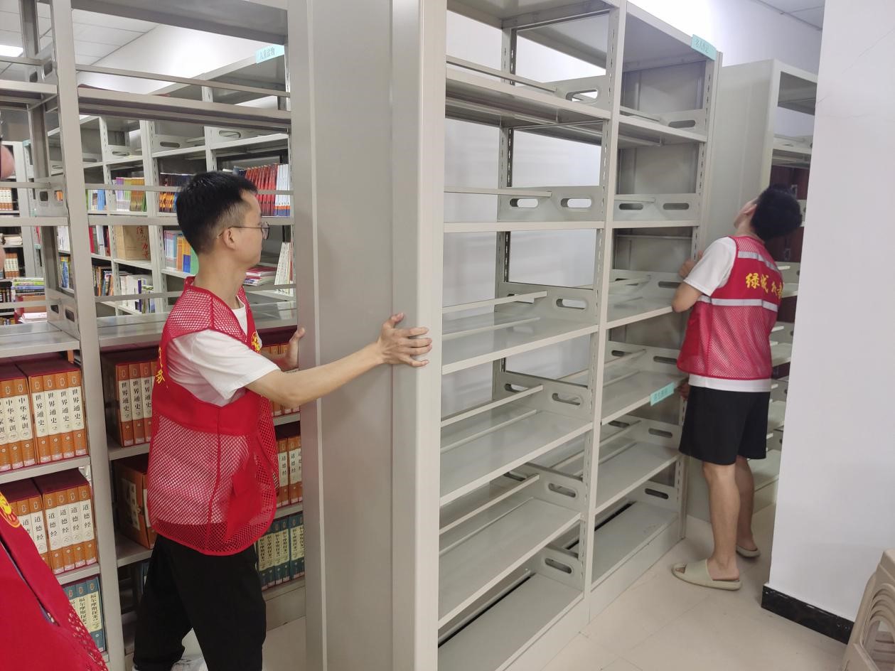图2 杨志和王峰基在社区图书室帮助搬运图书架
