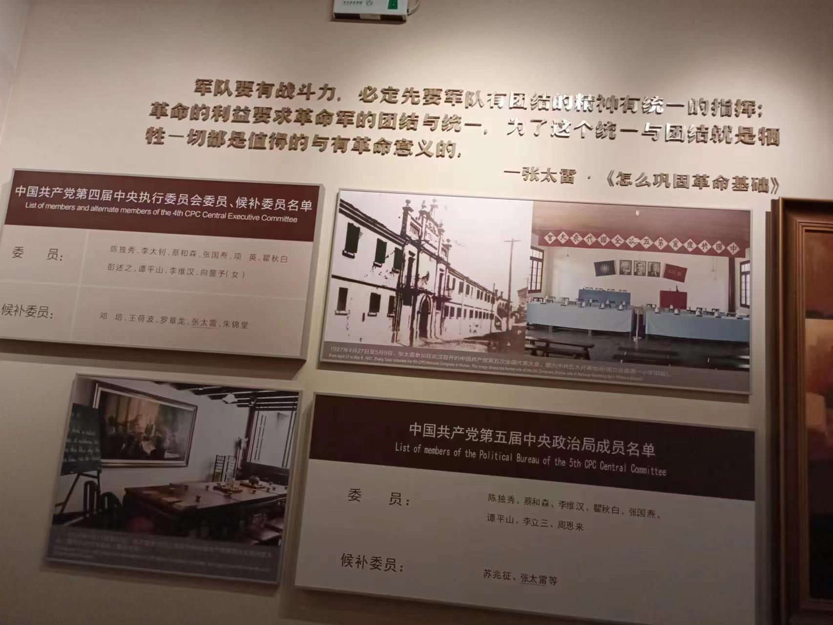 环顾四周,张太雷纪念馆一共两层,第一层呈一个圆弧状,历史的烙印就好像被印在墙壁的两旁,从大厅向左望去,张太雷前辈的生平展示满整个