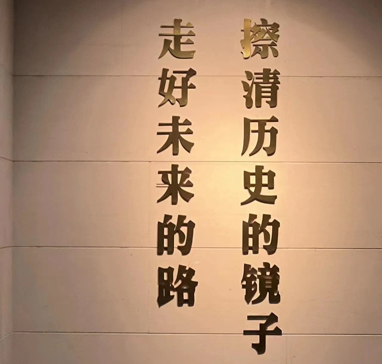 场馆内还设有许多警示标语“擦清历史的镜子,走好未来的路”、“历史是最好的教科书,也是最好的清醒剂”等等,这一句句警示语亦是惨痛历史的结晶。“甲午战争也是一个重大的转折,战败的刺痛,惊醒了沉睡千年的中国人。无数仁人志士为了追求民族复兴和国家富强,在屈辱中奋起抗争,在苦难中不懈探索,走上了救亡图存之路。”