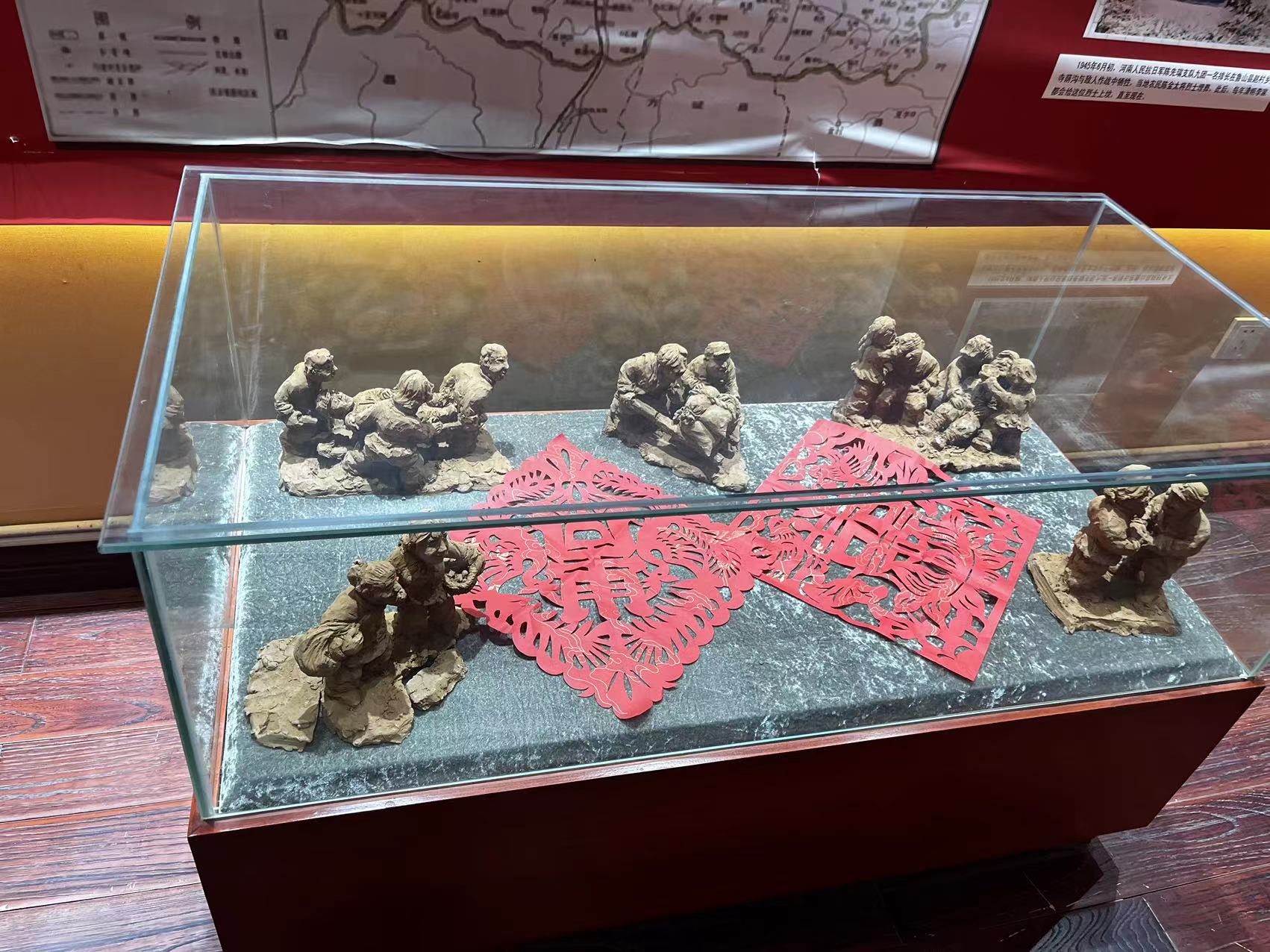 向纪念馆内走去,馆内分为八个展厅,展出珍贵图片近800幅,文字7万多字,实物上百件,主要有邓小平生平简介、红二十五军长征途经鲁山、鲁山早期革命活动以及抗日战争、解放战争时期重要事件的图片、实物、文字资料等。小队成员首先参观了馆内的主题展览。通过馆内陈列着的许多珍贵的历史照片和文物,包括第一次国内革命战争时期的豫西苏维埃政权的建立和保卫战,让小队成员们深刻感受到了革命时期人民奋起斗争的激情和决心。纪念馆内还通过泥塑的形式重现当时的文化活动。