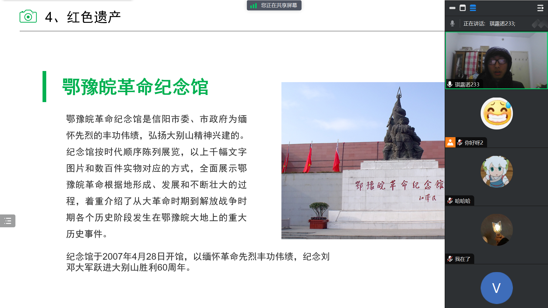图三 队员对信阳红色遗产进行介绍