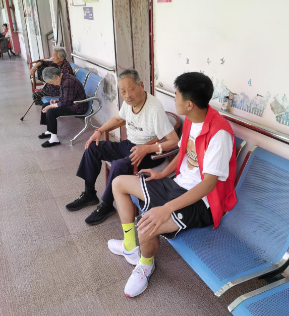 8 月 27日上午 9 时,团队 18 名队员带着提前准备的水果、手工剪纸材料来到老年公寓。陈依琳院长热情接待了队员们,介绍道:“咱们公寓的老人大多性格开朗,退休教师张东风老先生最爱聊历史;曾为豫剧演员的李想女士,你们唱两句她肯定能接上;三楼行动不便的王凤女士,平时很少下楼,你们多去陪她说说话。” 随后,队员们分成三组展开活动:陪伴组负责与老人聊天、读报;文艺组在活动室准备表演;生活组则协助护理人员推着行动不便的老人到院子里晒太阳。