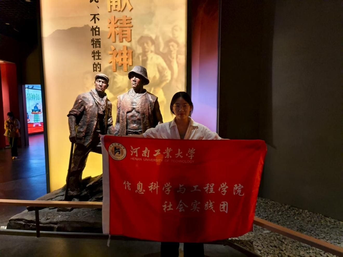 为深入探寻二七故事与二七精神,社会实践队员们怀着崇敬的心情对二七纪念堂“铁路修建”、“星星之火”、“革命烈焰”、“永恒丰碑”、“精神指引”、“传承弘扬”、“红色地标”、“城市记忆”和“百年辉煌”这九个部分进行了详细的参观。在参观过程中,团队成员在二七纪念堂内沿着展览区缓缓前行,仔细观看每一处史料,认真阅读革命先烈的光辉事迹,深刻了解了“工人运动的兴起与发展”的起因、经过以及深远影响。在参观完二七纪念堂后,团队成员们对二七故事与二七精神进行了深刻的讨论,感受到了工人团结一心、不屈不挠、敢于抗争的革命精神,被工人们的强大力量所感染,也对郑州这座城市有了新的认识。