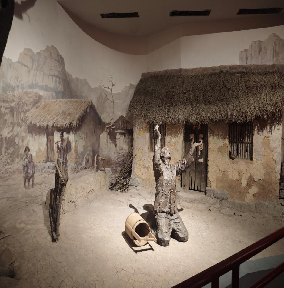 继续深入馆内,一幅展现往昔艰苦岁月的场景复原展品吸引了众人目光:人物雕塑跪地祈水,身旁简陋的茅草屋,干裂的土地,都无声诉说着林县人民曾经缺水的艰难。透过这些,深刻感受到林县人民修建红旗渠时的坚定决心。此次参观,让团队成员深深明白了红旗渠的历史背景,也为他们的暑期实践添上了浓墨重彩的一笔。