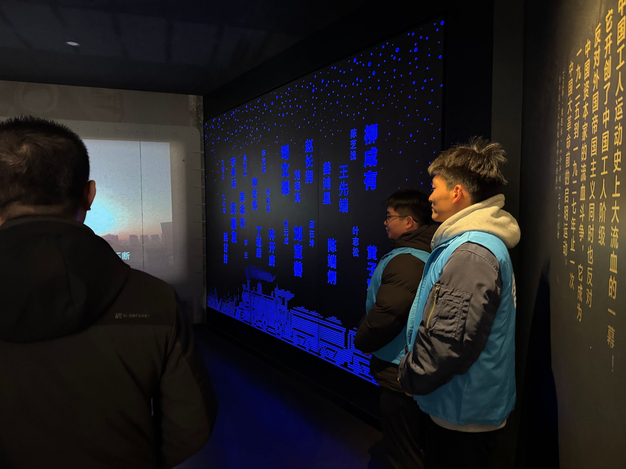 郑州二七纪念塔作为纪念 1923 年京汉铁路工人大罢工的重要红色地标,是二七精神的物质载体与精神象征。团队成员抵达后,在场馆讲解员的引导下有序进入展厅,首先参观了“京汉铁路的修建与工人运动的兴起” 展区。展厅内,泛黄的历史照片、珍贵的实物展品、生动的场景复原,将队员们带回了百年前那个风雨如晦的年代。从工人阶级争取权益的呐喊,到李大钊、林祥谦等革命先烈为信仰献身的壮举,讲解员详细讲述了二七大罢工的历史背景、发展历程与深远影响,让队员们深刻体会到 “坚定信念、团结奋斗、敢于斗争、勇于牺牲” 的二七精神内涵。