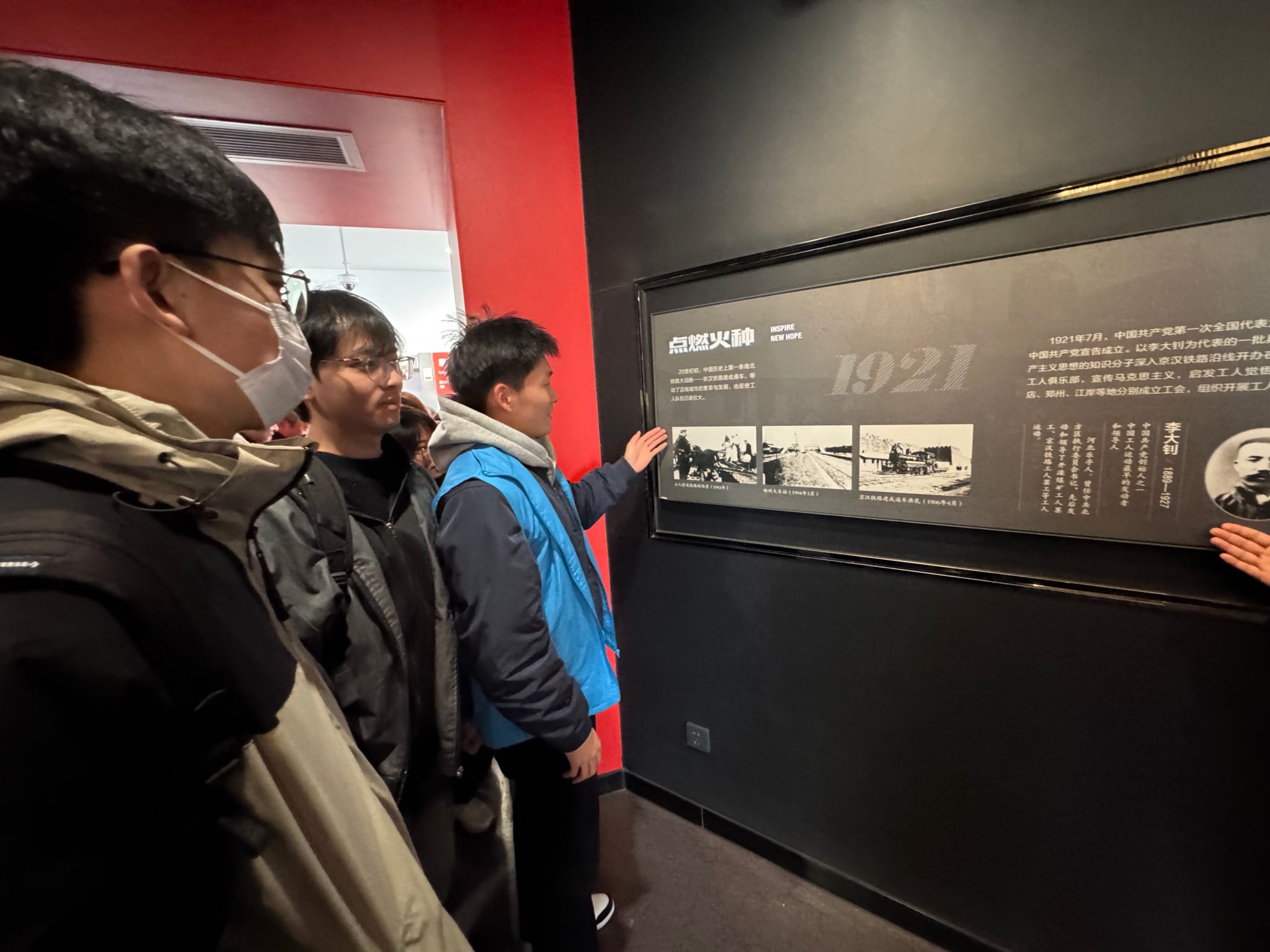 在“二七精神的传承与发展”展区,队员们驻足凝视着新时代二七精神的实践案例,从铁路建设的技术突破到城市发展的日新月异,直观感受到红色基因在当代的延续与升华。期间,团队成员围绕 “作为入党积极分子如何践行二七精神”展开热烈讨论,纷纷结合自身专业学习与成长经历分享感悟。鲁世杰同学在参观工人运动时期的通讯工具展品时,感慨道:“先辈们在艰苦条件下仍坚守革命信仰,我们如今拥有优越的学习环境,更应传承这份奋斗精神,在专业领域刻 苦钻研,为国家发展贡献青春力量。”