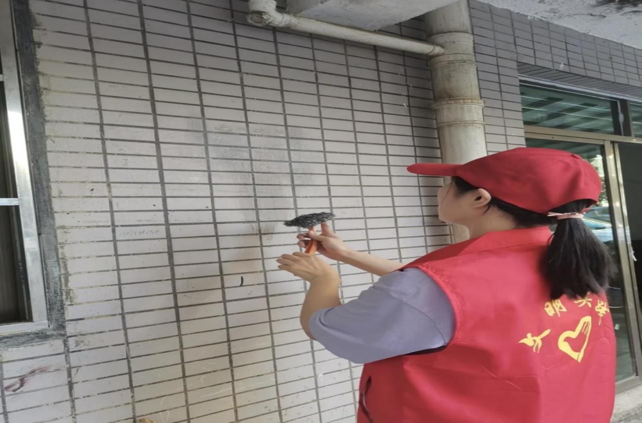 图 3 团队成员清理墙面