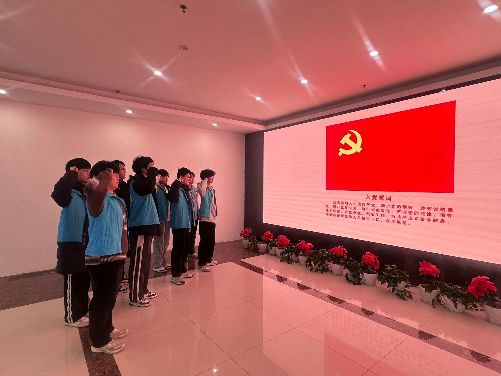 1月16日,团队走进郑州党史馆,将目光从历史文脉转向红色征程。在庄严肃穆的氛围中,成员们面向党旗庄严宣誓,以铿锵誓言表达向党组织靠拢的坚定决心。