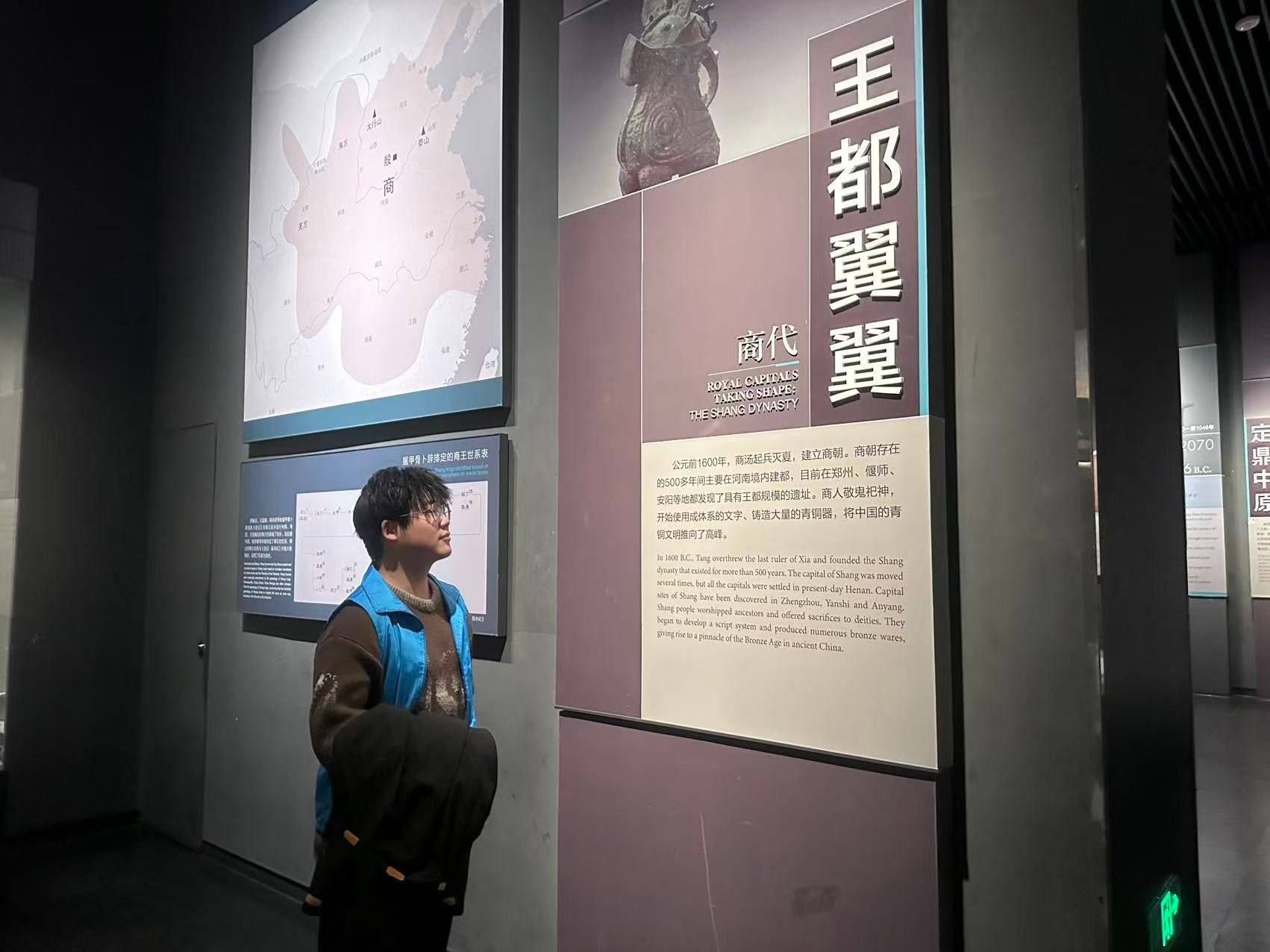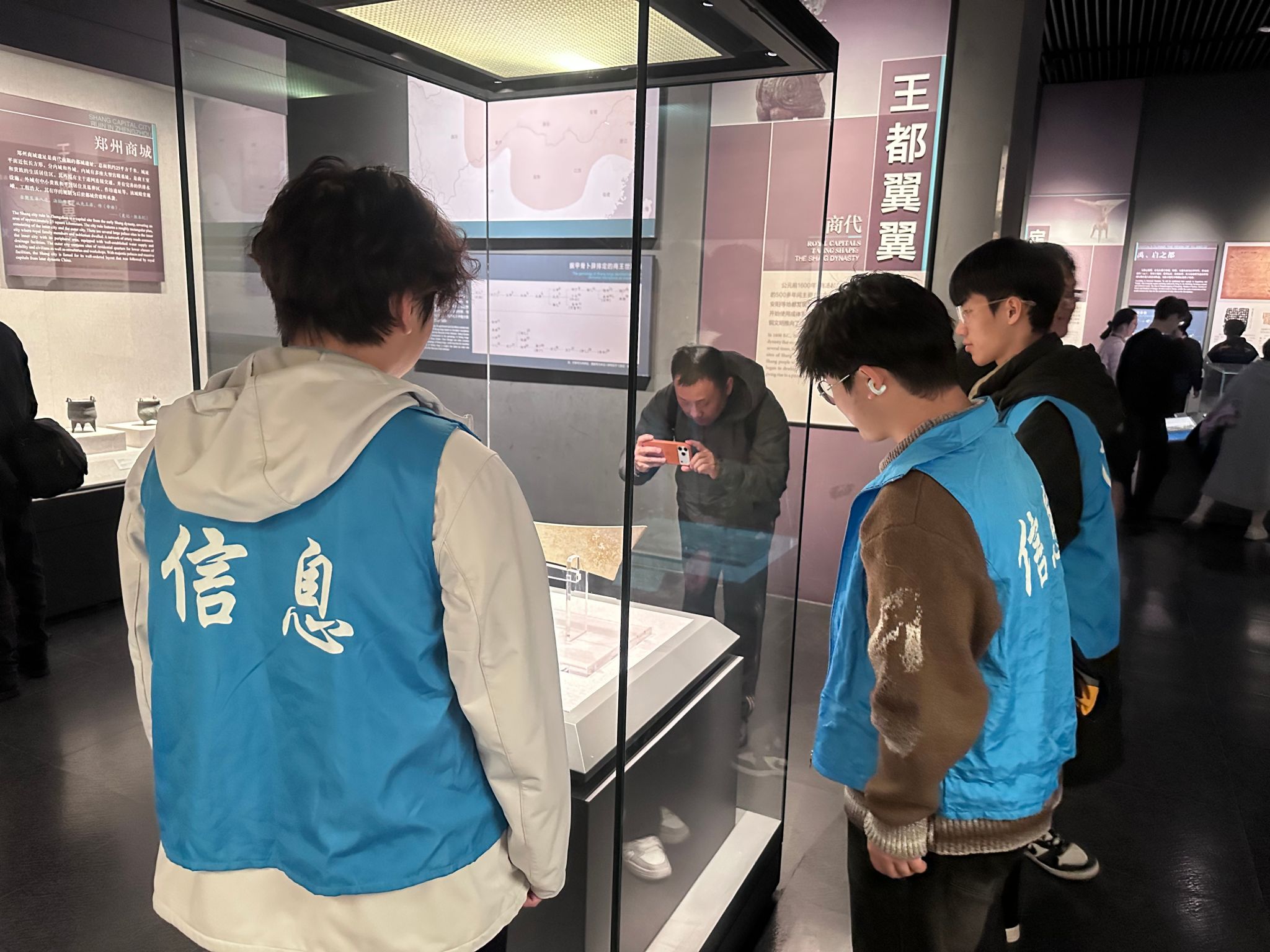 1月15日,团队首站抵达河南博物院,以“行走河洛间——河南博物院藏夏商周文物与中原文明溯源”为主题,开启文明探源之旅。在“泱泱华夏 择中建都”基本陈列展区,成员们沉浸式探访夏商、西周展厅。兽面纹夔足方鼎的雄浑纹饰彰显商代青铜文明的鼎盛,父乙觥、祖辛卣的铭文纹饰成为解码古史的密钥,而何尊上“宅兹中国”的铭文,更是让大家直观感受中原地区在中华文明中的核心地位。