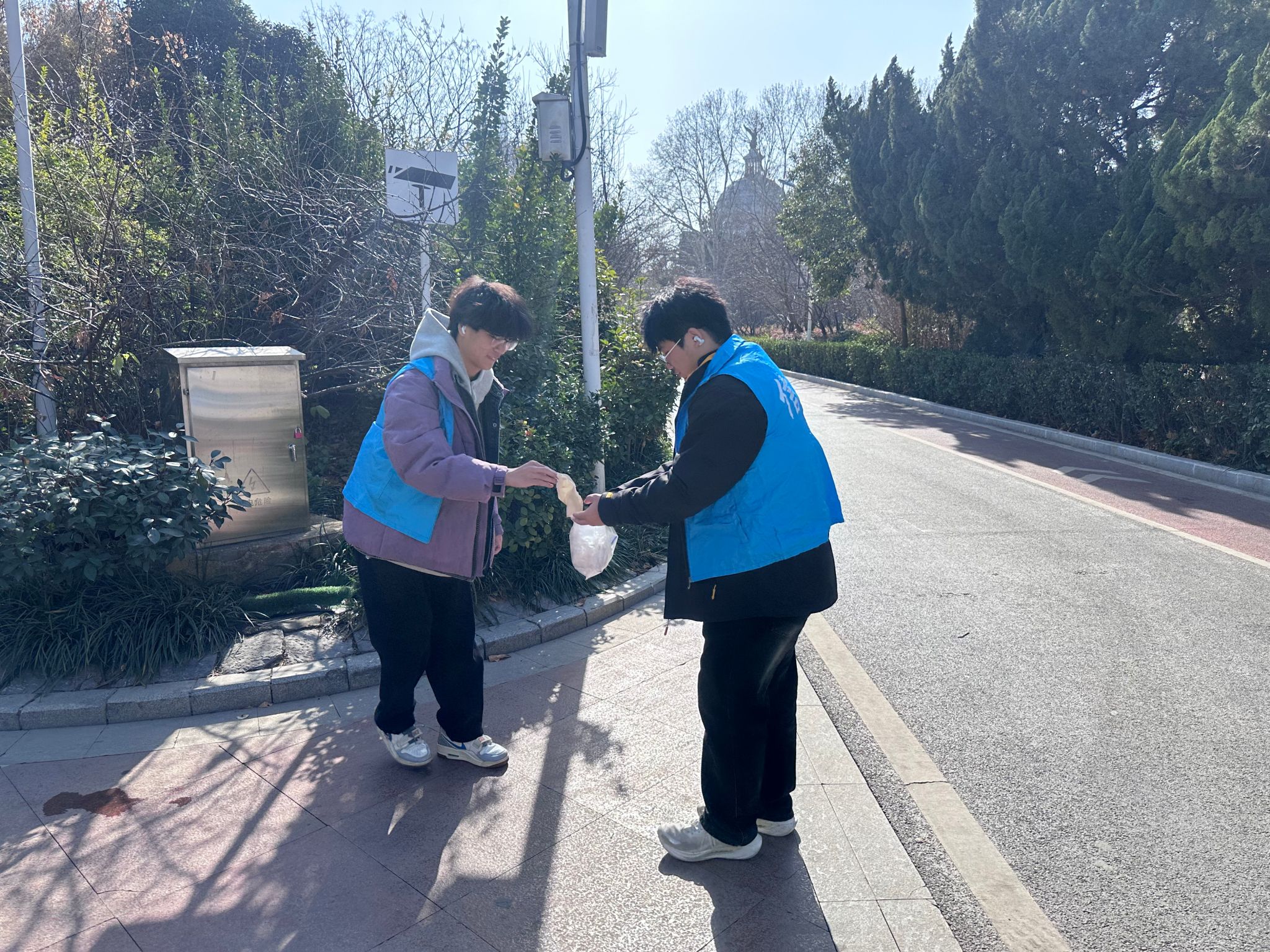 1月17日,团队来到碧沙岗公园,以“清除环境垃圾,守护生态美景”为主题开展志愿实践,将前两日的精神感悟转化为服务社会的实际行动。成员们备好清洁工具,在公园管理人员指导下分组行动,围绕主干道、草坪绿地、休憩座椅周边等重点区域,细致清理塑料纸屑、果皮杂物、烟头等各类垃圾,不放过任何卫生死角。