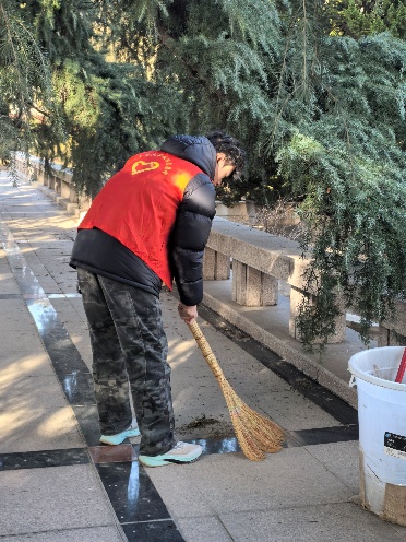 图 二 团队成员清扫落叶