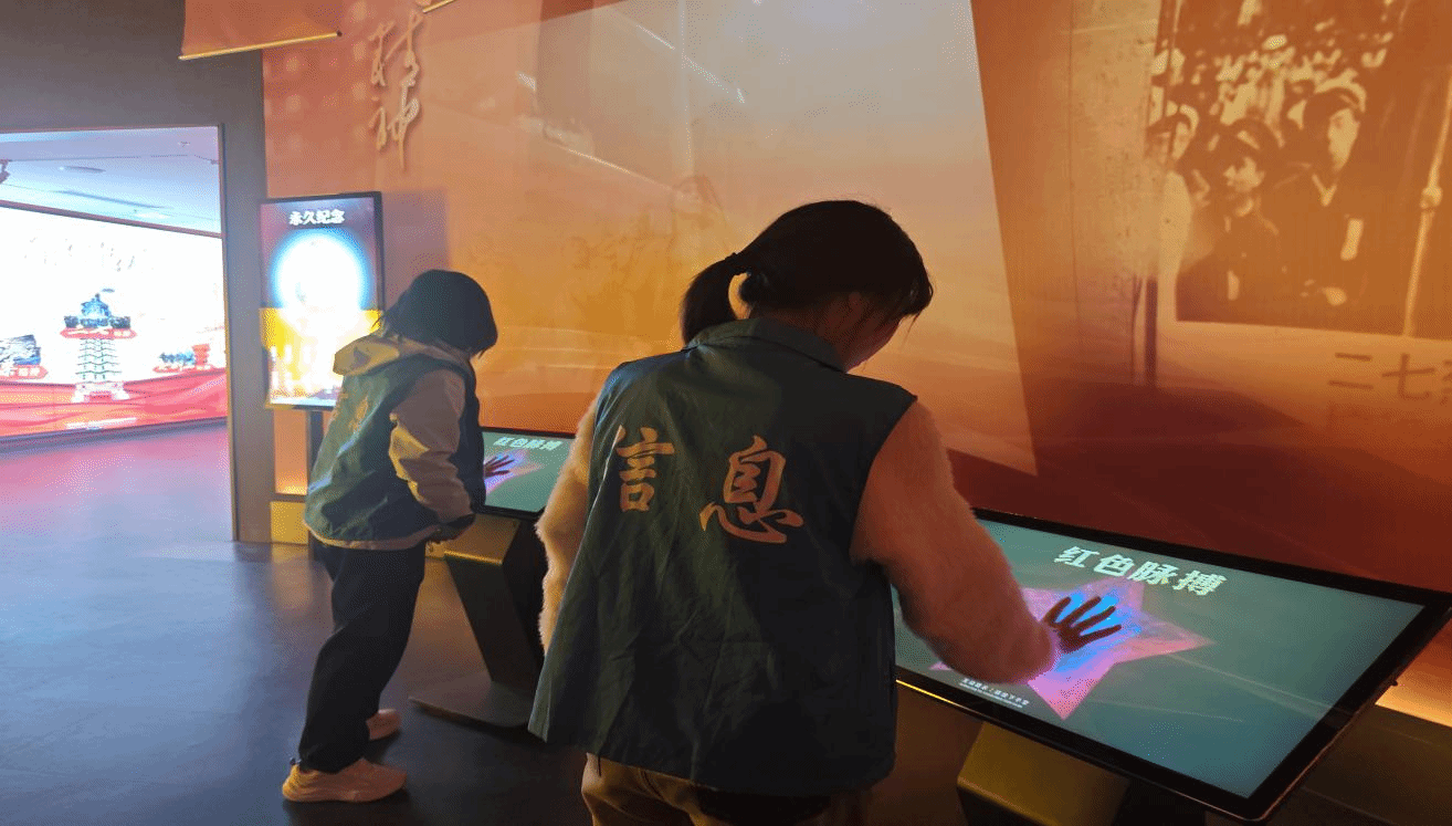 图六 队员体验展馆内的现代互动装置,感受历史与科技的融合